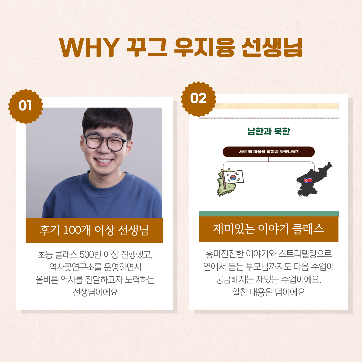 역사꽃연구소를 운영하고 계시는 우지융 선생님은 연세대학교 사학과를 졸업한 후, 마케팅 분야의 직장인으로 회사를 다니다가, 현재는 역사꽃연구소 운영을 비롯해 한국사 콘텐츠 제작, 강의 제작에 몰입하고 계십니다.